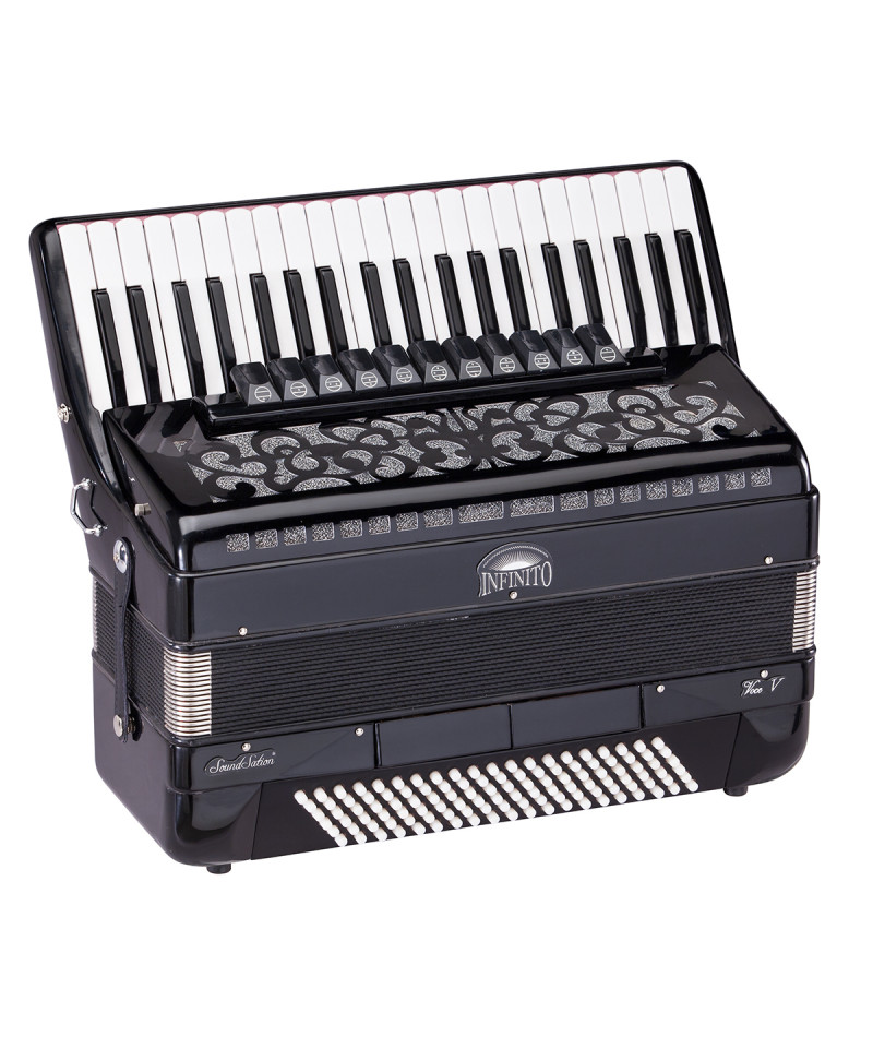 Soundsation presents the new line of infinite accordion. The name has not been chosen at random. Infinite, our territory, the Marche, which boasts a long tradition, which has made the accordion worldwide all over the world. Designed by an Italian team the infinite accordion moves down the entry level instrument with an unparalleled price ratio. The complete range in different sizes, from 48 to 120 bass.