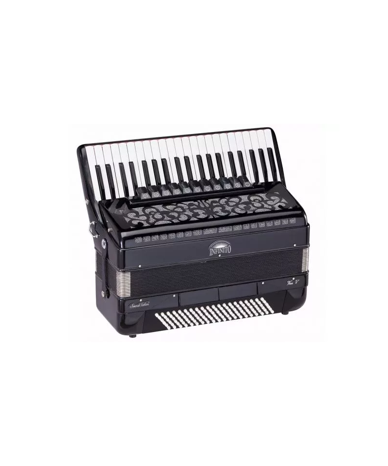 Soundsation presents the new line of infinite accordion. The name was not chosen at random. Infinito remembers the territory of the company, the Marche, which boasts a long tradition and which made the accordion famous all over the world. Designed by an Italian team the infinite accordion moves up the Entry Level instrument bar with an unparalleled price value. The range is complete and available in different sizes, from 48 to 120 bass.