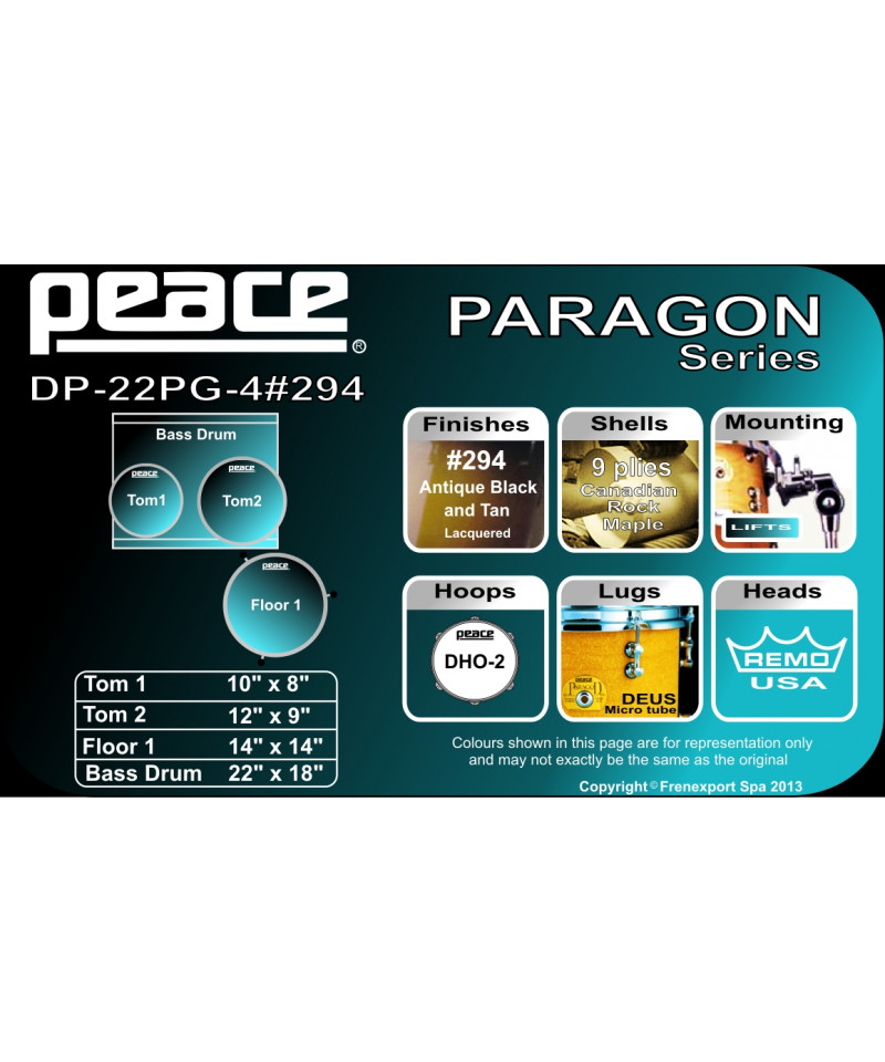 True battery enthusiasts have always choose maple drums. ETherite that the Peace team developed the Paragon series, creating 9-layer Canadian maple drums. Simply "the best of the best". The wide range of measures and leases available to the musician, whether professional or amateur, the ability to customize your set based on the most disparate needs. The use of patented Lifts systems for the support of Toms and Mechanical Deus Microtube They favor a better and easy tuning as well as the possibility of changing the skins with the assembled rid of the ridasta.The captivating look, superlative sound and visibly technological construction make Paragon a series that leaves no room for compromises. Standard packages provide for the supply of only drums together with which all the accessories of the vast PEACE catalog can be ordered separately.