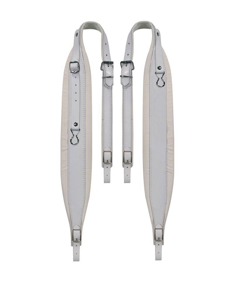 Accordion shoulder straps, 96-120 bass, 99-104 x 8.0cm, rear belt, leather lined velvet, white color-w