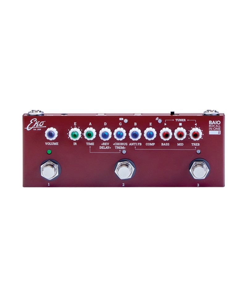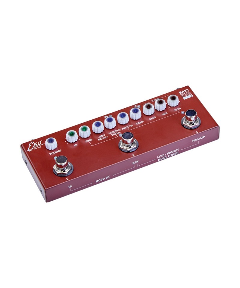 The Baio A is the multi-effect pedal with integrated IR for acoustic guitar, classical and low-acoustic guitars. Presents 8 irs of micro-shaded acoustic instruments, complete tone controls, compressor, antifeedback, chorus, tremolo, reverb, delay, built-in tuner with mute function, entrance and jack outlet for instrument, stereo output for the Headphones, Bluetooth connection and dedicated USB ports for use as an input sound card for both PC / Mac, and smartphone. The ideal pedal with which you will always have with you. Thanks to its 16cm long, just 6cm wide and 260g of weight, Baio is the multi-effect system all-in-One able to offer all the features and functionalities indispensable to the modern guitarist and bass player. Easy to TrasBring and super resistant thanks to the metallic chassis, allows total management of your sound.