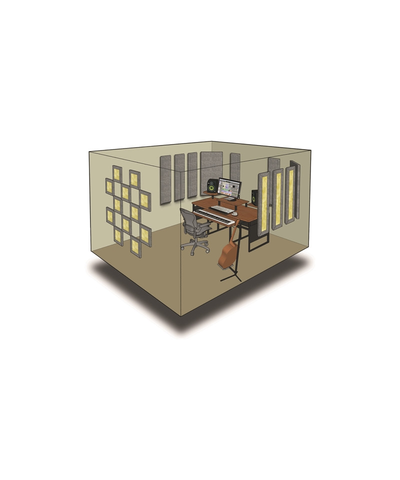 Kit for a room of m.3,048 x m.3,657kit for a room of m.3,048 x m.3.657. Includes 8 panels mod. Control Columns from cm.30.48x121.92x5.08 with 16 clips; 2 Broadband panels from cm.61,00x121.92x5.08 with 8 clips; 12 Scatter Block from cm.30.48x30,48x2.54 with 12 clips. Gray color.