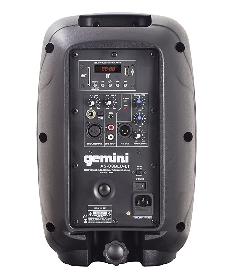 As the-8blu-Lt continues in the decisive mission of Gemini to provide DJ professionals, entertainers, venues and business presenters reliable and well-built amplification equipment at an affordable price. The 8 "woofer offers 2000 watts of pure energy in addition to the high-definition LED lights show that moves over time all night. This speaker equipped with various reproduction options including USB inputs, FM radio, SD, microphone, entrances XLR and RCA. Gemini has built this loudspeaker to take it easily wherever a sharp and powerful sound.