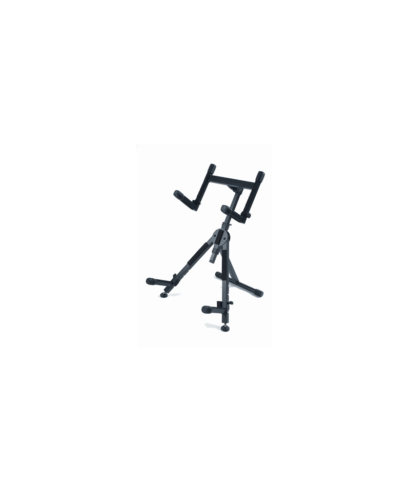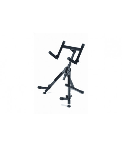 The BS / 625 is characterized by versatility. The robust upper, tiltable and adjustable platform at 6 positions in height with a safety pin, can accommodate a small combo in the best position of use and optimal listening. By closing the arms and positioning it parallel to the floor, it can be used as a practical support for small mixers, processors or houses with effects, and the support can accommodate, in the lower arms, a case or a combo with height up to 70 cm. The support can accommodate a headboard in the upper arms and a case with a maximum height of 56 cm in the lower ones.
