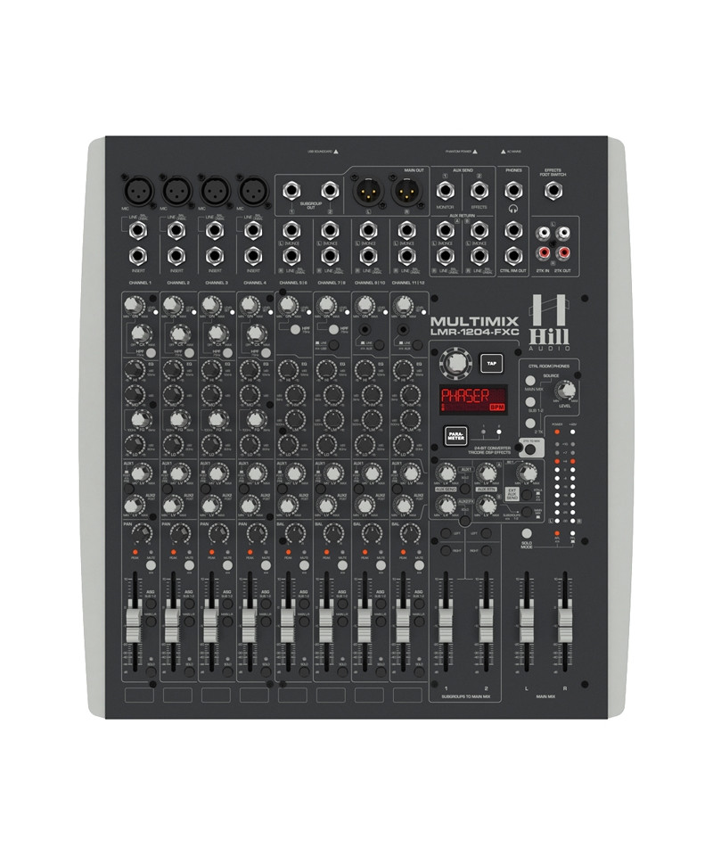 Hill audio LMR-1204FXC is a bench live mixer in installable format also to Rack 19 "built on the tradition of the famous Multimix thirty-year success series and is the entry model-Level with subgroup management. It has all the necessary functions for a small live event: 4 mono channels with low microphone input-Noise and compressors with rotary potentiometer that make it simple adjustments to the dynamics, an EQ to 3 bands with semi-machine medium for perfect tonal adjustment. 4 stereo channels provide connection possibilities for a wide variety of audio sources, two of which are equipped with 3.5 mm TRS inputs for a possible use as a DJ mixer. 2 AUX outputs, one of which with the possibility of pre / post fader routing towards the internal effects processor. The latter mounts an LCD display for a simple reading and allows you to edit up to 3 parameters for IASCUN algorithm. A USB interface for digital playback / recording operations complete the characteristics of this very wide equipment for a mixer.