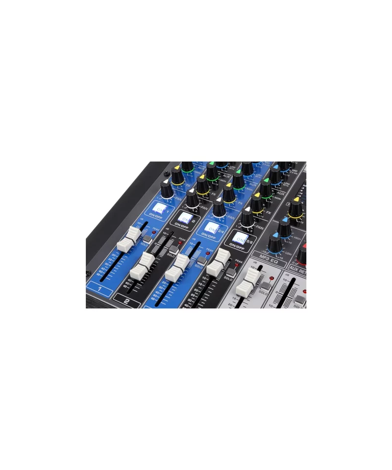 12-channel professional mixer equipped with integrated USB reader and BT receiver. Perfect for use during live performances, places of worship or other places that require multiple inputs.