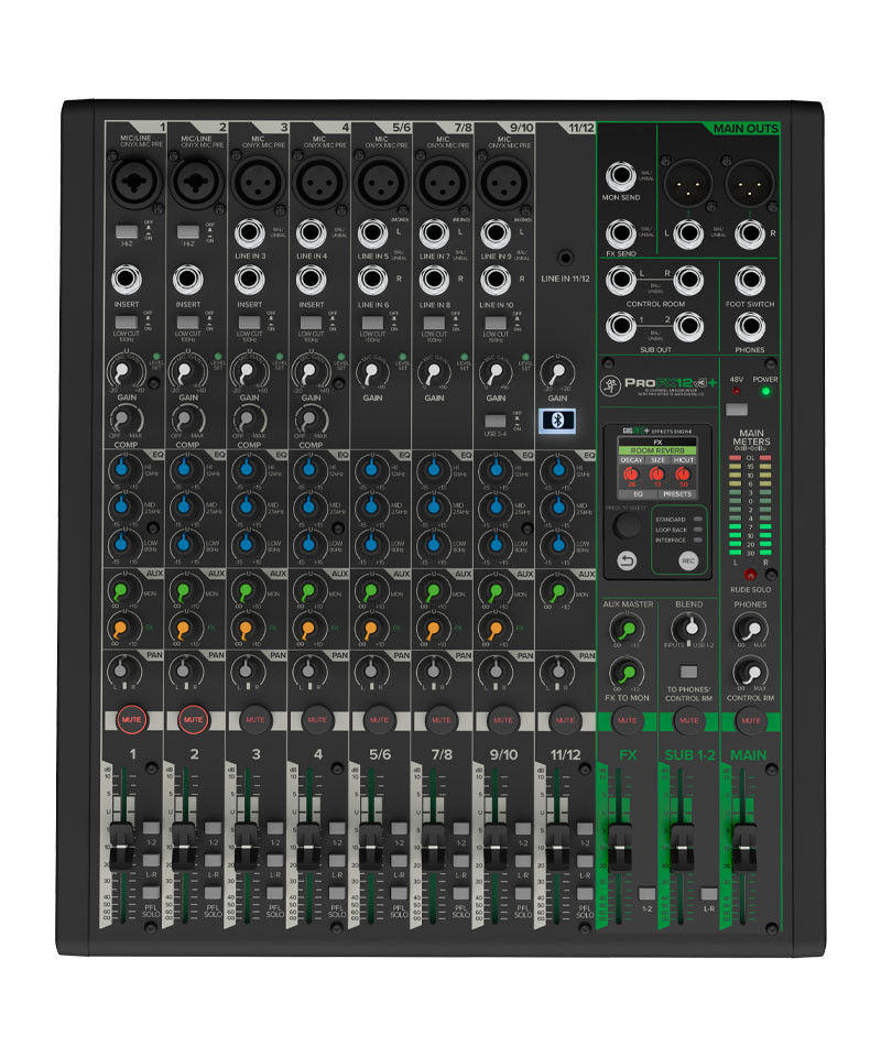 12-channel professional analogue mixer and USB audio interface-C with powerful improvements for studio and live streaming recording. Capture your performance with the award-winning Preamplifiers Onyx, channel equalizer and analog compression. The updated GigFX + effects improve your sound, you can also modify and save your presets on the fly via the color display. Switch from one recording mode to another to track Dry or include FX, or use the Loopback mode to play streaming video games or run accompaniment traces without feedback. You can also involve guests of the podcast by phone via Bluetooth on a dedicated channel. With a simple connectivity, the heat of the analogue and an updated FX engine, Mackie Profx12V3 + the perfect fulcrum for your studio. With a gain up to 60 dB and an ultra noise-Low, the PROFXV3 + series mixers allow you to sound better than ever. Record podcasts, play streaming the gameplay or produce the next success, all with an ultra clean and transparent audio. Improve your sound using high-resolution GigFX + effects, with 12 presets that you can modify and save on the fly through the LCD screen in natural size. Combining the heat of an analog recording console with precise digital effects, PROFXXV3 + an ideal mixer for both home studies and live events. Capture your streaming or your performance with one of which pristine at 24 bits / 192 kHz with a USB audio interface-C 2x4 Integrated, complete with three recording modes: Standard for the complete mix with effects, loopback To include computer audio with streaming mixer signal and interface to record channels 1-2 Without effective effects.