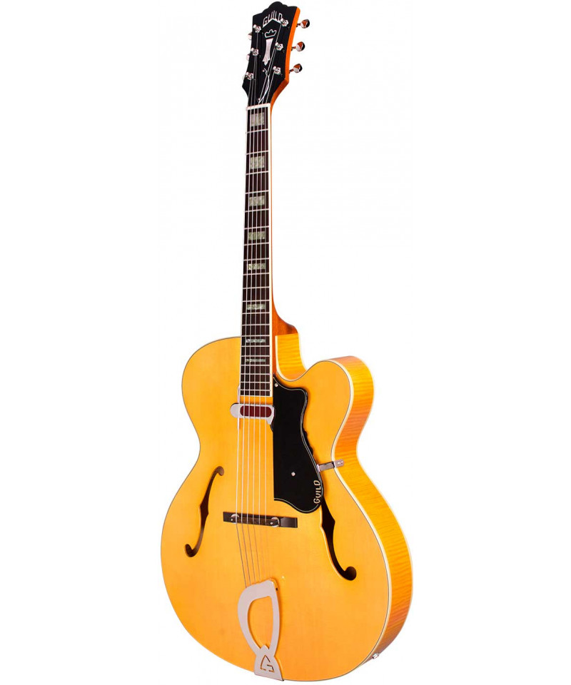 Looking for the final Jazz guitar? Here is the guild a-150 Savoy. This Guitar Fully-Hollow has a solid red fir top with a (arched) and flamed maple bands with a classic blonde polished polyurethane finish.