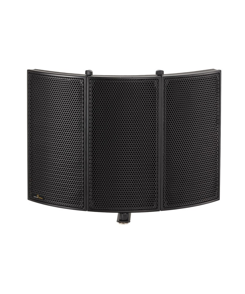 The insulating screen for microphone SOUNDSATION Sh-1000 allows you to carry out your registrations with clarity and precision in detail. The high density acoustic foam layer allows the microphone to maintain an airy sound by damping the surrounding noise and limits echoes and reflections. This creates a cleaner and more targeted audio. Two external panels can be easily folded towards the inside to create a smaller isolation chamber for a detailed audio recording. The screen can be easily mounted on a microphone rod or, on its optional table base. Its light aluminum frame and folding design ensure the insulating screen and transport ease.