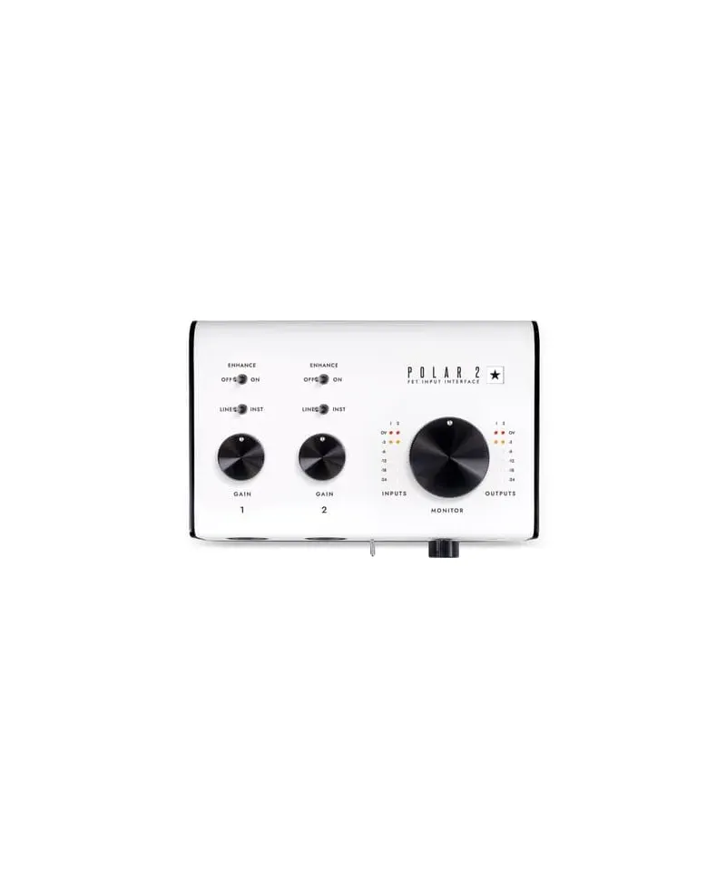 Polar 2 is a 2-channel USB audio interface designed by and for guitarists. It has 2 FET input channels for instruments, line and microphone, a headphone amplifier, Phantom + 48V power supply for condenser microphones, balanced outputs for professional monitoring, visual level meters and the exclusive switch 'Enhance of Blackstar. Activating the 'Enhance' switch is activated an exclusive electronics in the signal path that replicates the input stage of the guitar valve amplifiers. This circuit imitates the behavior and characteristics of the valve amplifiers, improving sound, feeling and response. When the Polar 'Enhance' function is activated, the innovative BlackStar input stage never suffers from digital clipping. No more messy recordings, no more hassle and no more confusion when it comes to setting the 'right' levels. Polar allows the musician to control the interface as the preamplifier gain of a real amplifier. The 2-channel audio interface designed for the recording of guitars. The FET input stage improves the sound and signal quality and is suitable for a wide range of tools, effects for effects and microphones. The 'Enhance' function introduces electronic components in the path that reproduce the sound of a guitar amplifier and completely avoids digital clipping on the inputs of the instruments. Use this interface as if it were a real amplifier and don't worry about setting the right levels. The 'Enhance' function on the microphone or line inputs gives a clarity and a natural lightness to the recordings of voices and acoustic guitars and eliminates the need for additional hardware and an expensive to capture a guitar signal of High quality. All integrated into Polar.