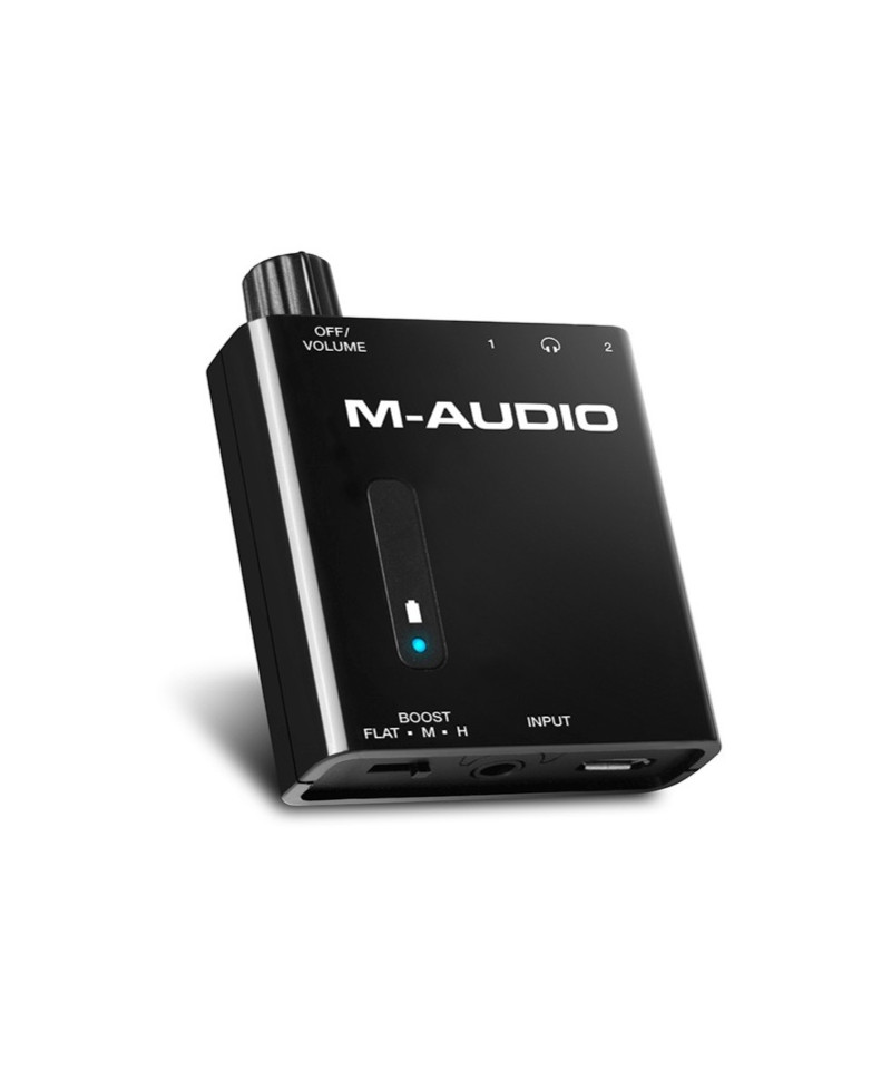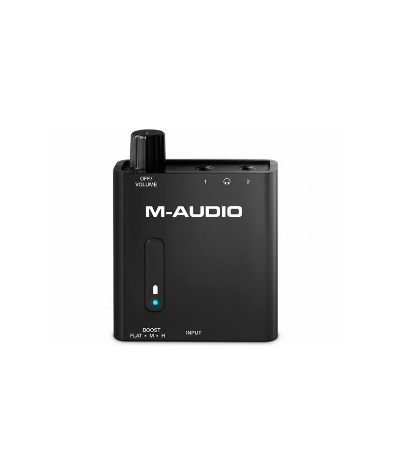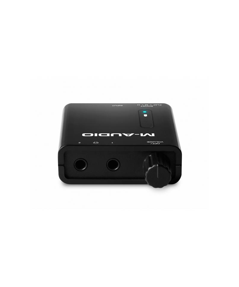 Amplifier for two battery powered headphones with 2 jack-outputs from 1/ 8 ", 1 Stereo input in jack format from 1/ 8 ", ON / OFF / VOLUME knob, LED status indicator (ignition, charging / discharge battery), Boost switch that optimizes the output level for each 16 to 100 ohm impedance headphone. Battery loading via USB port of your computer or USB power supply (not included). Autonomy: about 8 hours.