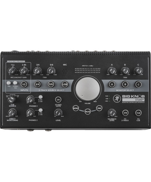 There is a lot that you can do with the big Knob Studio + Mackie. As an audio interface, you can record two 24-bit audio channels / 192 kHz courtesy of the dual onyx microphone preamplifiers. A Direct Monitoring option allows latency-free records and built headphones outputs-In are ready for the artist's monitoring. Surely you know the importance of reliable communication in the studio. With the built-in Talkback functionality you will be able to communicate easily with your artists. A stereo aux input on the front panel makes it easy to connect a music player to listen to the reference tracks. E, Of course, you also have complete control over the input source and the selection of the monitor. At the cost of a normal USB audio interface, the Big Knob Studio + Mackie offers a lot of more.
