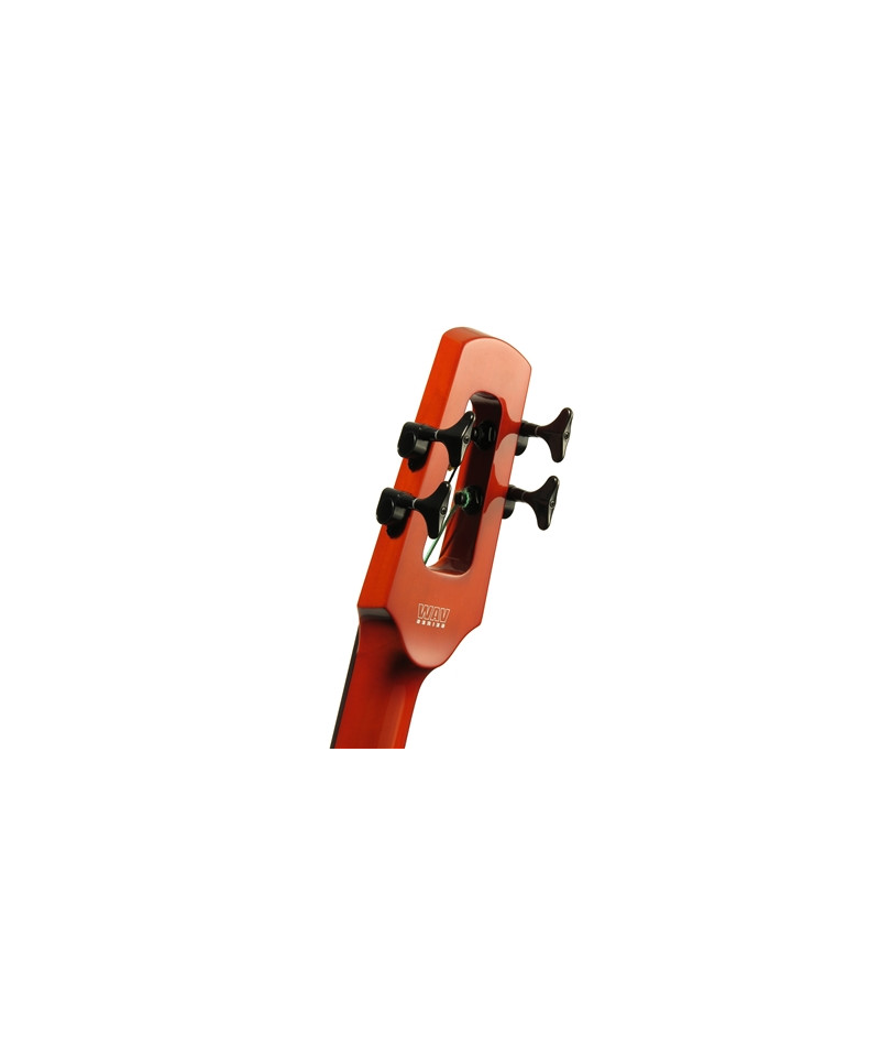 The WAV electric double bass available at 4 and 5 strings, in the AmberBurst, Black and Transparent Red finishes.