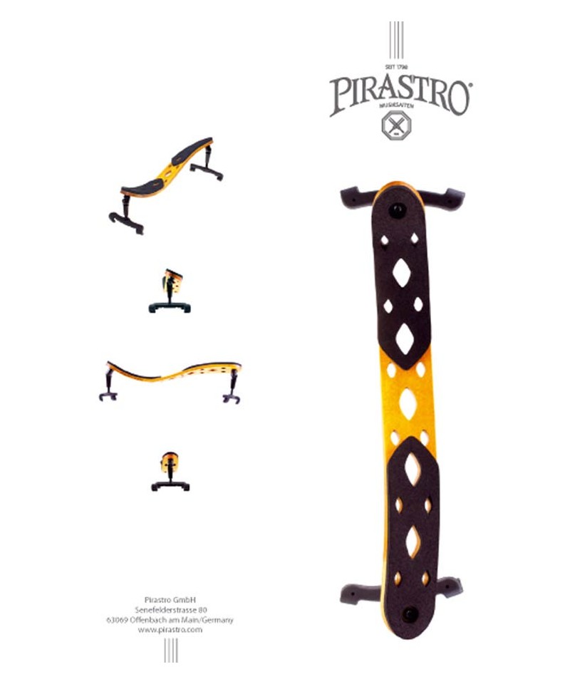 Spallier for 4/4 violin in flexible wood Korfker model. The first adjustable wooden backbone that can be adapted to the shape of the musician's shoulder. It offers a wide and very precise personal adjustment for positioning, height and tilt. It makes the visual relationship between a very dynamic instrument and espalier and guarantees a contact and a perception of the completely particular instrument. Thanks to the minimum use of the rubber, the sound features are better. This product has been designed to complete the timeless beauty of the violin.