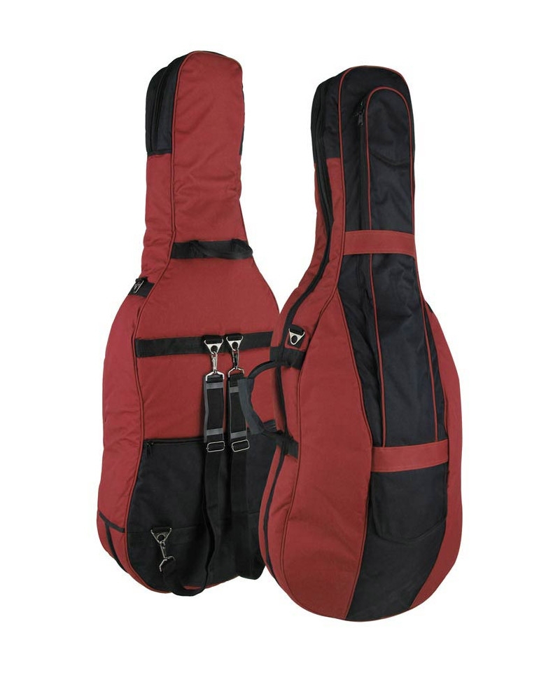 Padded bag for cello 3/4, 19mm padding, multi pockets, 2 shoulder bags for backpack. Dark red