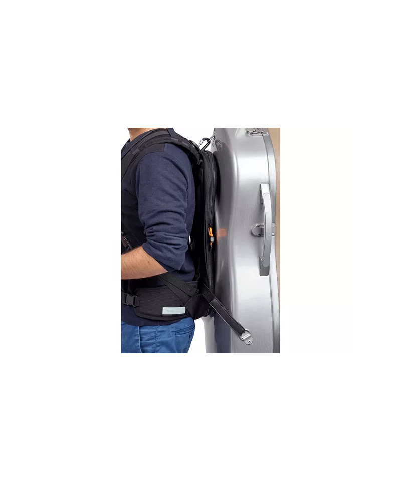 Ergonomic cello backpack with a robust, light, adjustable and breathable transport system for maximum comfort during use. It sticks to the cello custody via the three-point system (1x section of the handle and 2x sections for the sides).