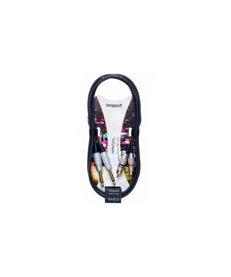 Cable-Jack connection adapter-RCA stereo for Hi-Professional fi suitable for connecting console, readers, burners and more. This type of cable specifically designed for the professional musician and the DJ, responds to the multiple needs of the end user. The "Eagle" series professional cables of the Bespeco are synonymous with very high quality and durability as they are built in ITALIA According to the most stringent safety and reliability regulations.