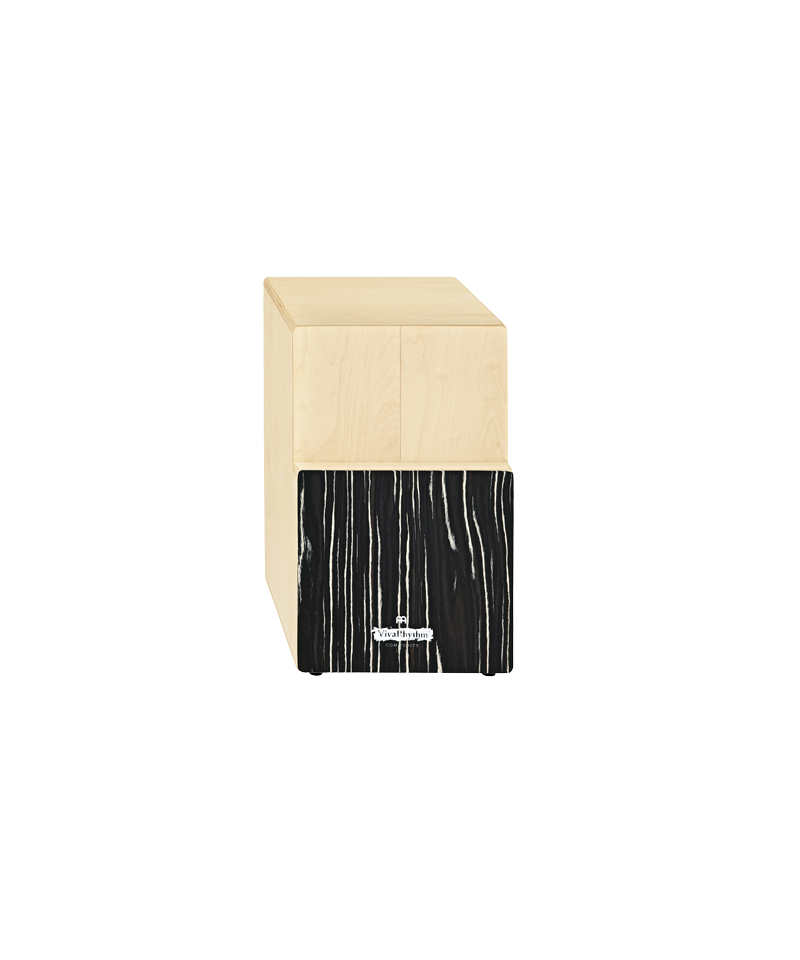 'Meinl Viva Rhythm VR series-Tricaj-I know tri-Tone Cajon 11 3/4 '' L x 19 1/ 2 '' h x 13 '' p The exclusive Tri Tone Cajon Meinl Vivarhythm offers three different sonorities on three distinct surfaces: Snare Cajon (with internal spectacle), Bongo Cajon and traditional Peruvian Cajon. It allows you to get a multitude of rhythms quickly passing from one surface to another. Made of Baltic birch wood with the soundproofed surface in Onyx Viedato. '