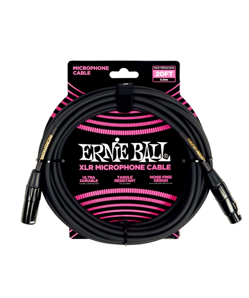 The P06388 is the 6 meter long Ernie Ball microphone cable. It is composed of two XLR (male and female) connectors and made with a black pvc cable with double shield for a longer life and less noise. Ideal for musicians and singers who wish to have a faithful and natural signal from their own microphones.