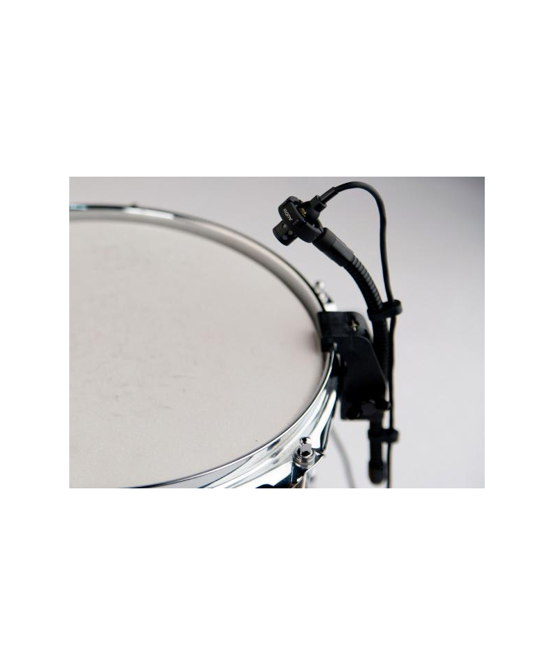Hypercardioid condenser microphone for drums and percussion Microd Mainly a microphone for drums and percussion, for professional use both in the studio and on the stage. The microd has a uniformly controlled hypercardiide chart and a regular response specified in its frequency range. This light, compact and simple to use microphone. The microd housed in an aluminum and isolated ring by means of a rubber anti-vibration mounting system. The microd is easily and securely on the standard circles using the patented DVICE mounting system.
