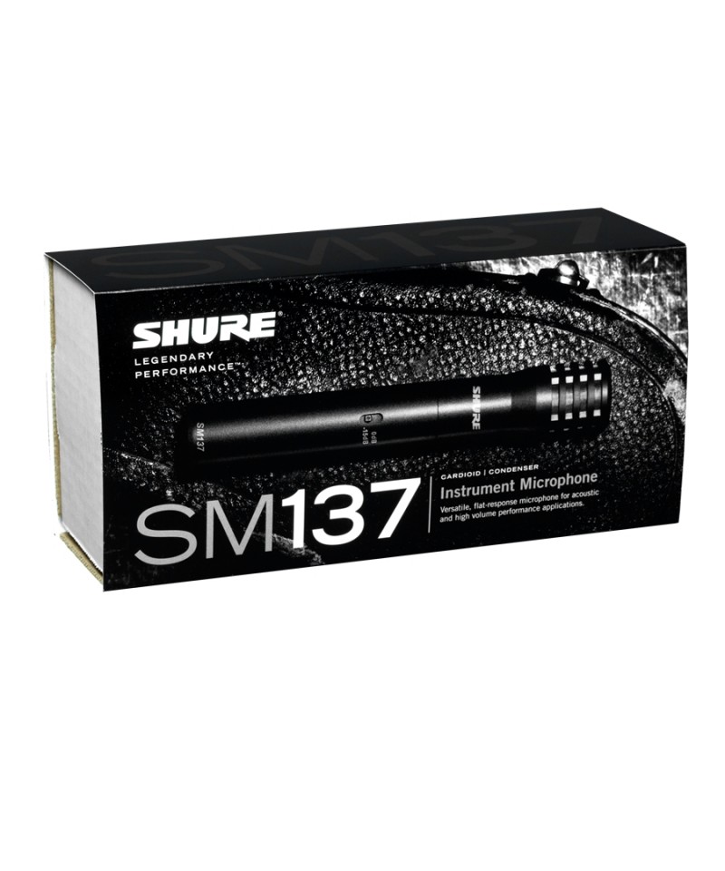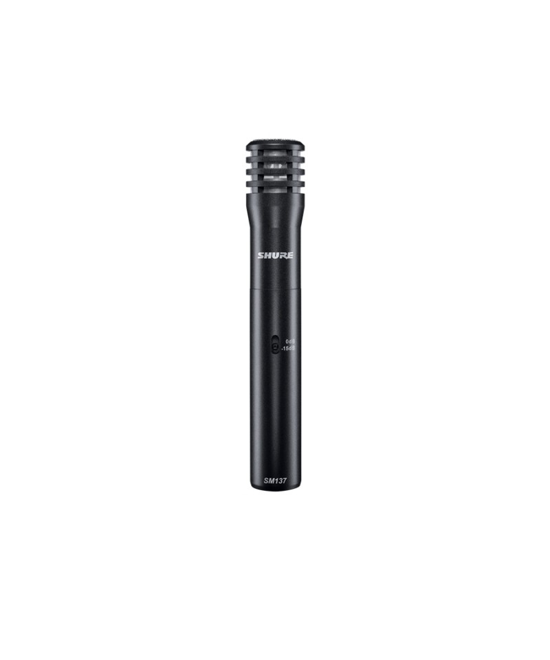 The SM137 a versatile microphone to stylus, cardioid, condenser, with an ultra thin diaphragm that provides a flat frequency response that combines linear highs with controlled bass. The microphone equipped with a 15-dB integrated attenuator that allows a natural reproduction of both acoustic sounds and in high volumes performances.