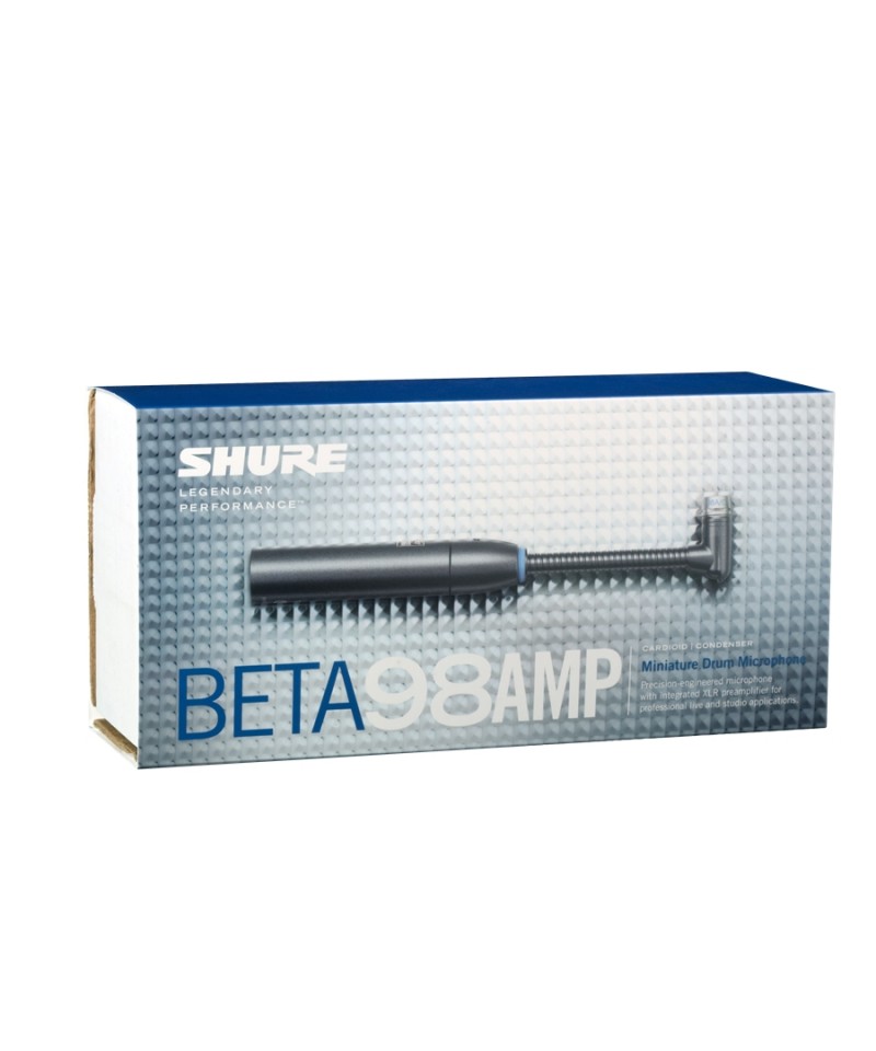 The Microphone for Beta 98 Amp/C battery combines an integrated preamplifier to a miniaturized capsule with a cardioid polar characteristic that gives a uniform, natural and optimized response for drums and percussion. Includes a flexible goose neck and the A75M universal clamp support to position it safely and precisely in any configuration.