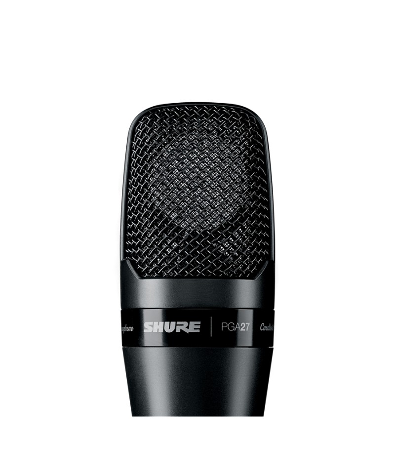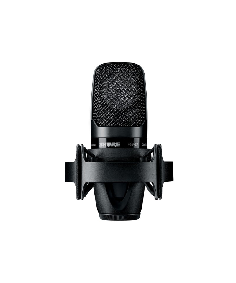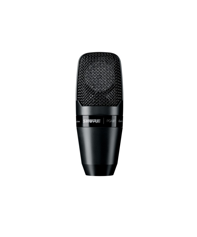 Shure PGA27 A condenser microphone (requires Phantom power supply), with a very sensitive cardiodine polar shooting pattern, very sensitive, optimized for a very natural and very precise shooting of the voice and instruments, with sharp acute frequencies and Powerful bass, and to avoid the recovery of unwanted species in low frequencies. The high sound pressure supported by this microphone allows its use in the resumption of a large variety of sources. Complete with a special antishock support, the recommended microphone for high quality recordings in Home Studio.