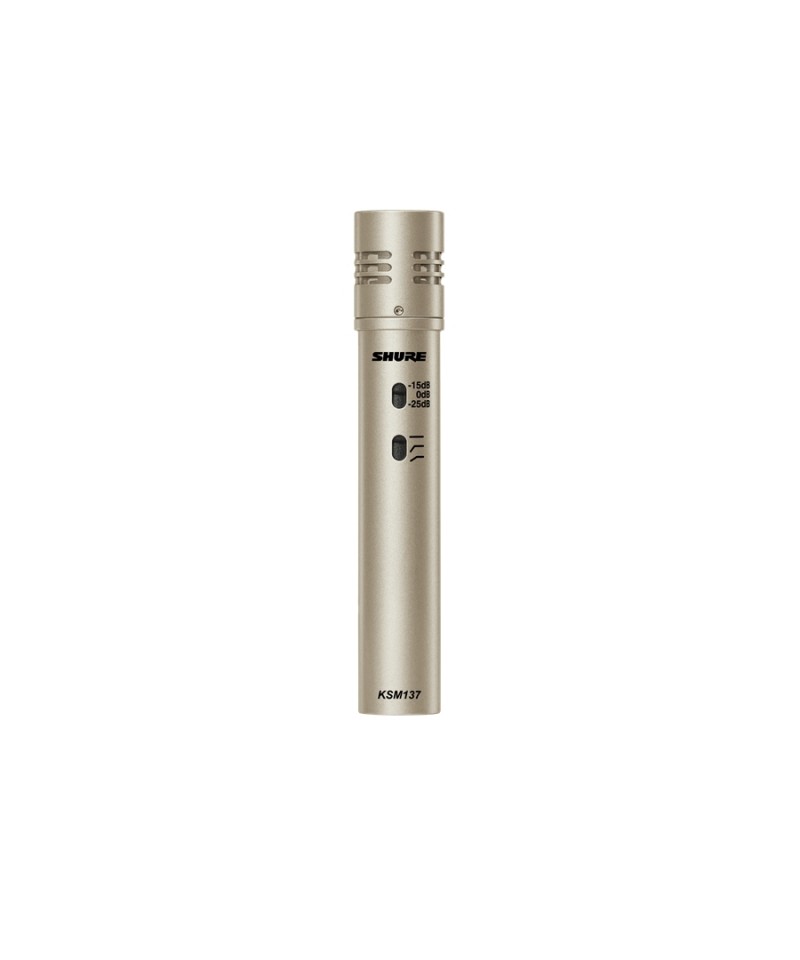 The KSM137, in the SL Color Champagne version, a microphone for instruments that mounts a condenser capsule with a cardioid polar characteristic, equipped with a attenuator and a filter passes-high. Among the applications for which recommended include close-up microfonance of acoustic and electrical instruments, overhead for percussion, brasses / woods, ensembles and even instruments such as double bass and bass. The KSM137 is good both in the studio and for live productions.