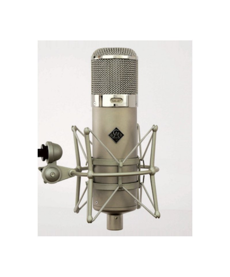 Cardioid valve microphone with multipattern condenser (cardioid and omni figures), inspired by the famous Neumman U-47, made with selected components of the highest quality, ideal for recordings of voices and instruments, equipped with a gear grain capsule with 27 mm Mebrane, NOS Tele-Camunken 800 valve, frequency response 20 Hz - 20 kHz, sensitivity 12mV / PA, impedance 200 ohms, noise level equivalent 10db, SPL max 140dB, powered with a specific external power supply. The equipment includes transport briefcase, wooden box, anti-vibration support and cables.