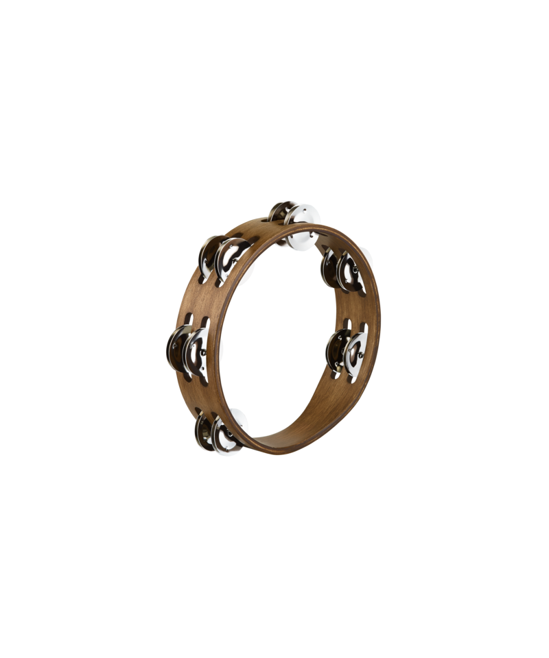 Tambourine with 2 steel wires. Good sound and compact design. With the Tambourelli Compact Tambourines Meinl has a complete set: Compact tambourines are light and fast and have an impressive sound. Brown color.