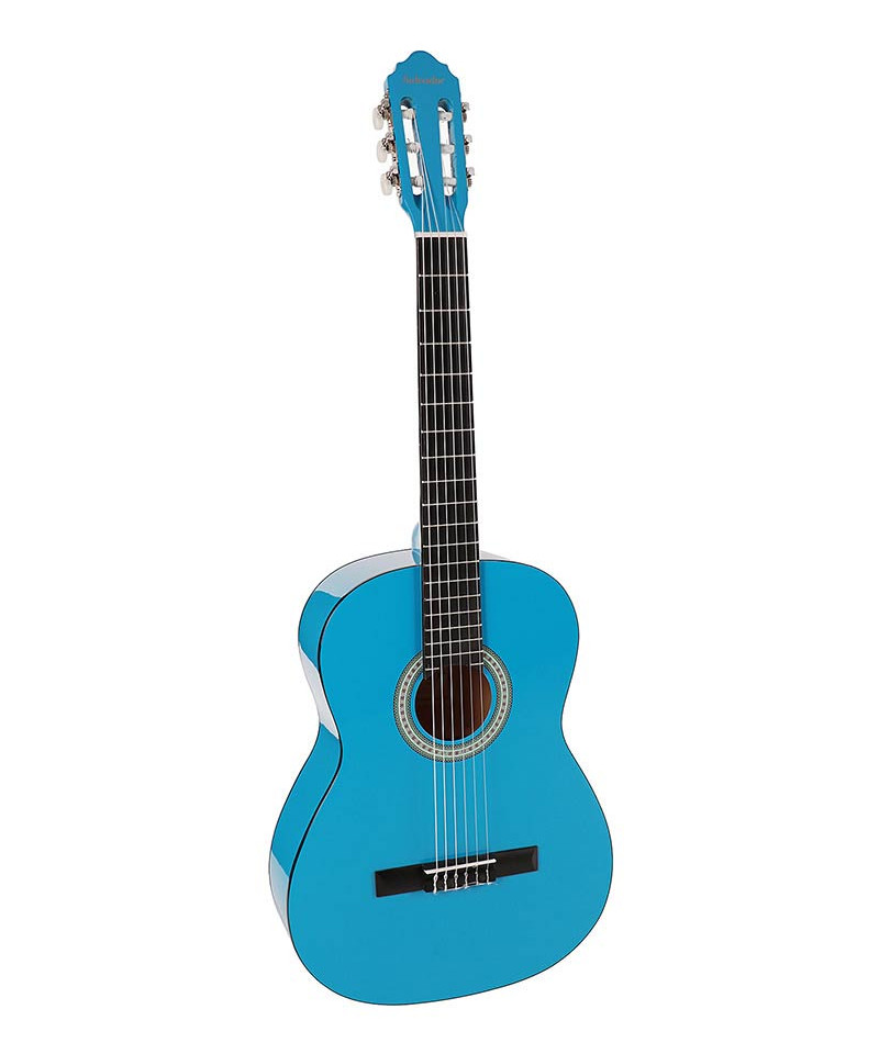The Salvador CG-144 is an excellent classical 4/4 entry level guitar. It has in fact the bottom and bands in linden, nickel keys and the truss-ROD which guarantees greater ease of intervention on the Action of the instrument. Blue color.