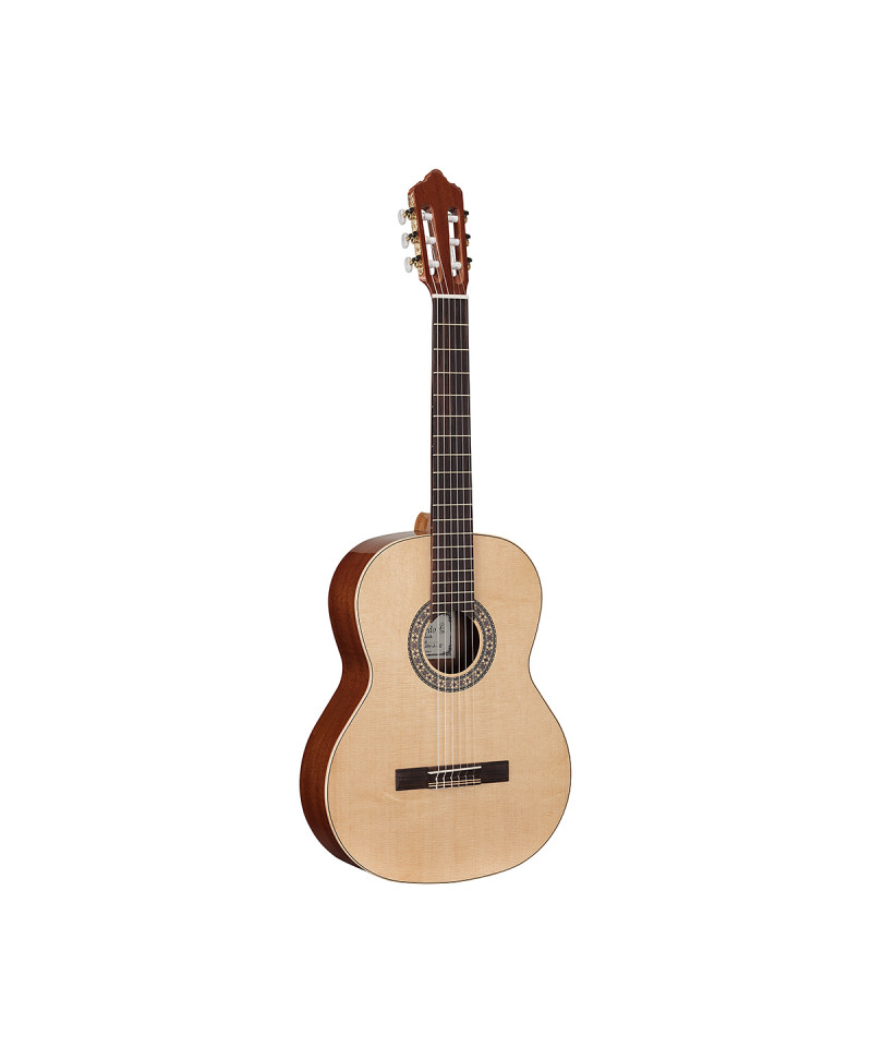 With the Europa Toledo series launches its classic guitars entirely built in Europe. Julia 44sg a 4/4 classical guitar with solid top in fir and mahogany bottom / bands. Characterized by a full and full-full sound, it counts on a set-Meticulous up that guarantees perfect play even to the beginner. Embellished by a glossy finish and gold mechanical, a tool from great value in its market band.