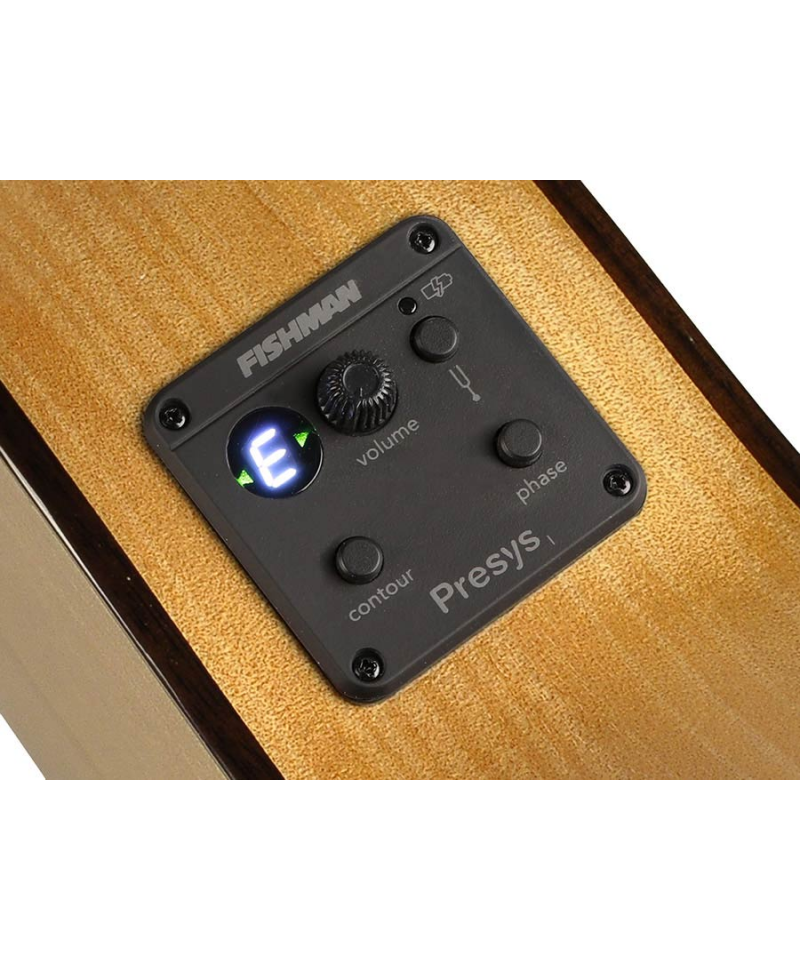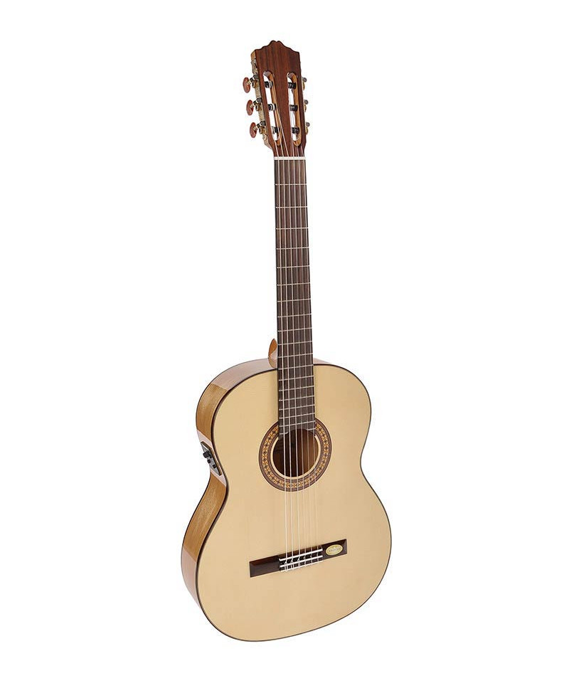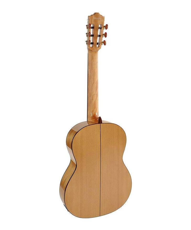 The Salvador Cortez CF-55e A flamenco guitar amplified with full shoulder, made of high quality European solid spruce and seamless bands and bottom. The very light and direct sound, the elegant finishes will accompany you coup after Bulle by providing you with all the percussive power required. The preamplification system brings flamenco sound in the studio or live.
