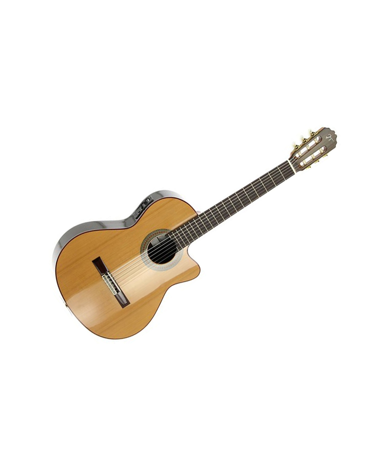 Selected with rosewood and golden bottom and bands and mechanics.Accurate selection of rosewood and mechanical wood with gold finish offer this tool an important differential. Cedar harmonic table, selected Indian rosewood laminate bottom and excellent sound feeling are the features that distinguish this ideal tool for more experienced musicians. Missing shoulder version with Fishman cl3 preamplifier.