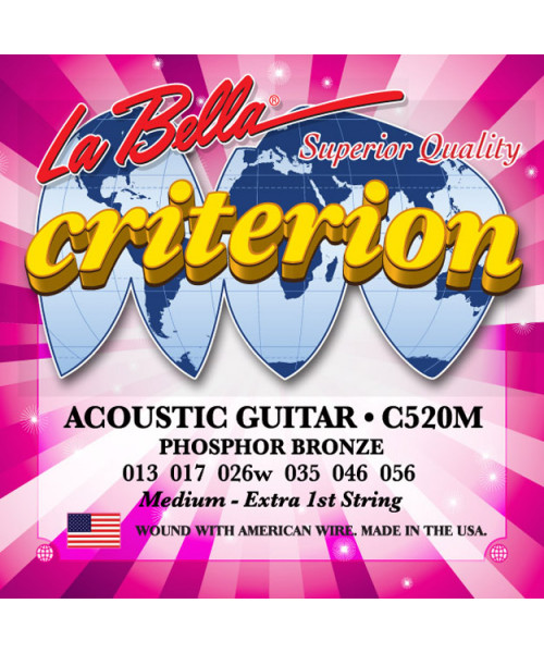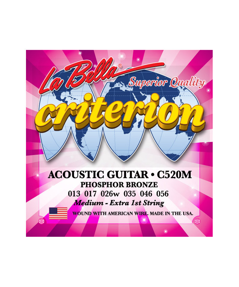 Wrapping in phosphorous bronze. 6 string set + an extra rope (E) Free). Medium tension. Scaling: full steel: .013 - .017. Low fosphor bronze: .026 - .035 - .046 - .056. Produced in USA with American cable. Packaged using MAP (Modified Atmosphere Packaging) technology to prevent oxidation and guarantee freshness.