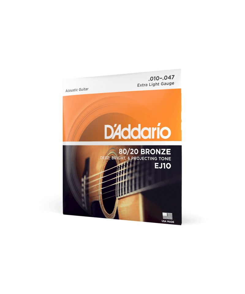 The ej10 80/20 Bronze d'Addario strings are the perfect choice for those looking for a lower tension and optimal soundability, ideal for vintage tools and musicians who prefer a lighter touch. They are made with the original 80/20 bronze acoustic alloy introduced by John d'Addario Sr. and John D'Angelico in the 1930s and offer a brilliant stamp and deep bass, making them ideal for registration and for fans of Traditional sounds.