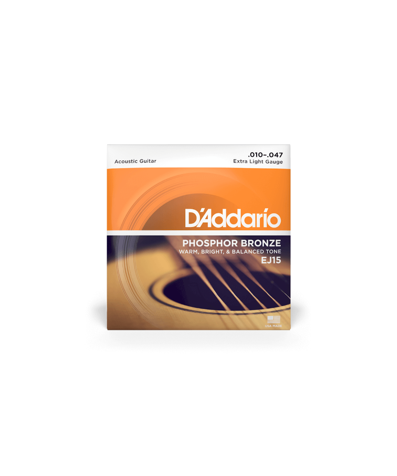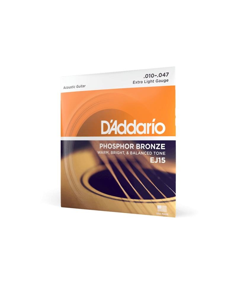 EJ15 is a light-light phosphorous bronze rope that provides a lower voltage ideal for vintage tools and soundability. Since d'Addario introduced the phosphorous bronze guitar ropes in 1974, they have been synonymous with hot and balanced acoustic tone.