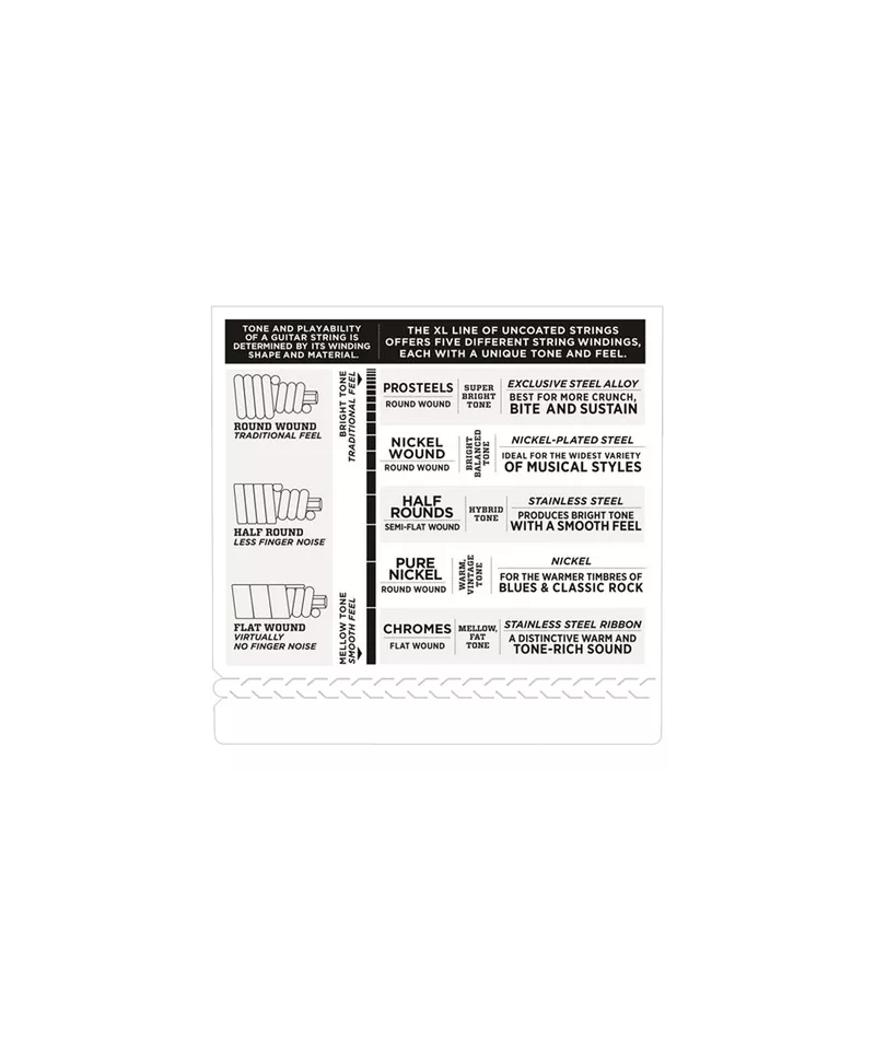 The EXL170 d'Addario offer the ideal combination between brilliant sound and feeling of comfort. The most versatile and universally palatable set for all music styles, is suitable for low-scale low with a length up to 920mm (36 1/ 4 ")