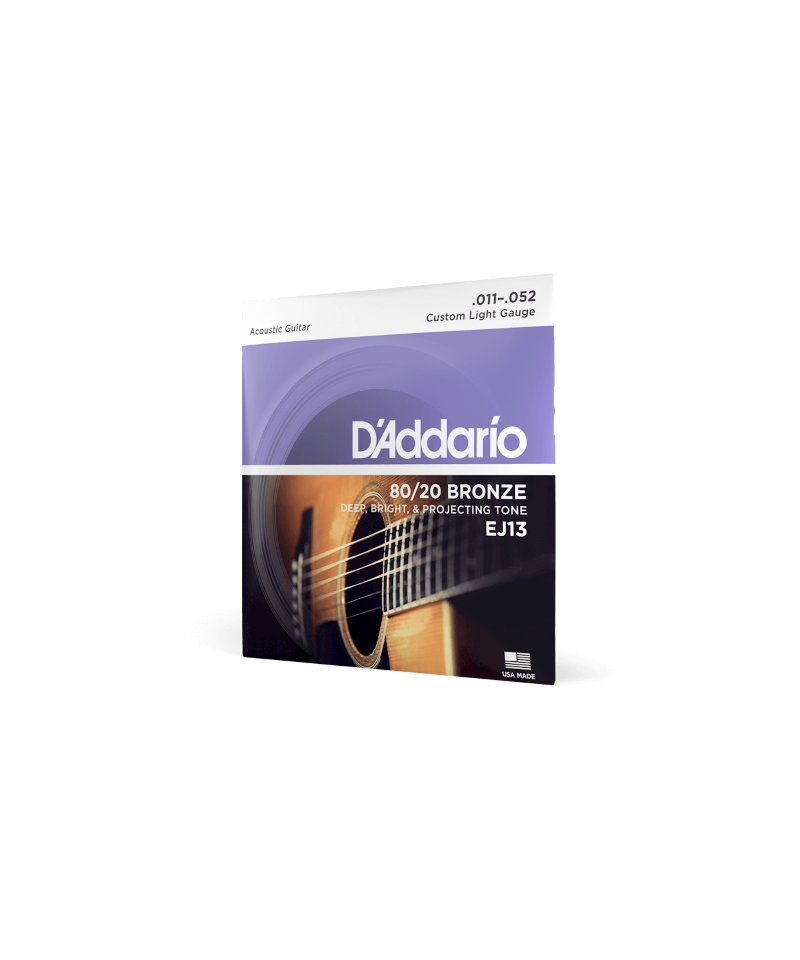 Indicated as Custom Light, the EJ13 strings are an original hybrid scaling and a comfortable compromise for guitarists who want the depth and projection of low light ropes, but a little less tension on high ropes for a Easy bending. The 80/20 bronze strings are popular for recordings for their sparkling and deep sound and are very popular with traditionalists and vintage passionate for their historical meaning. All the add-in acoustic strings are wrapped on a hexagonal-shaped core, steel with high carbon content, resulting in bright sound with long sustain and excellent intonation.