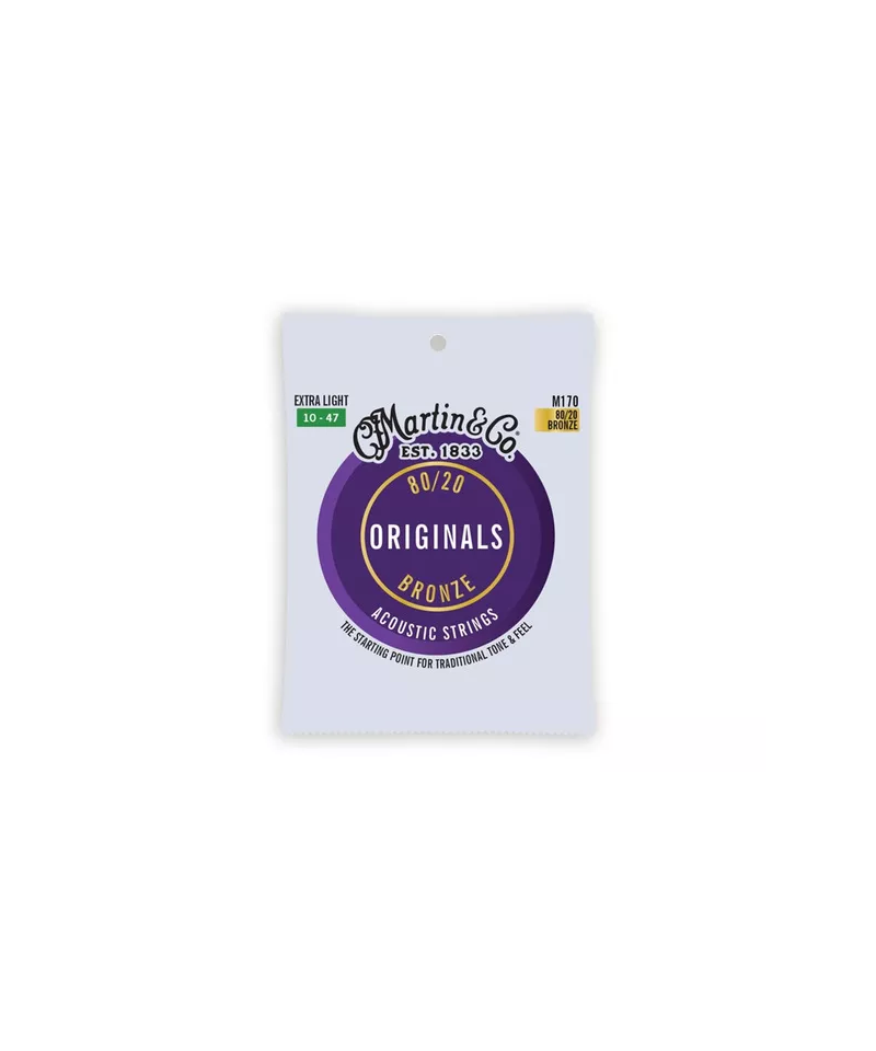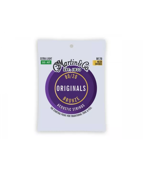 M175 is the set of custom light ropes for 80/20 bronze acoustic guitar in the "Martin Originals" series with scaling 10-47 .. The Martin Originals are the updated version of the historical SP, with a low cost, ideal for recording sessions and for use on stage.