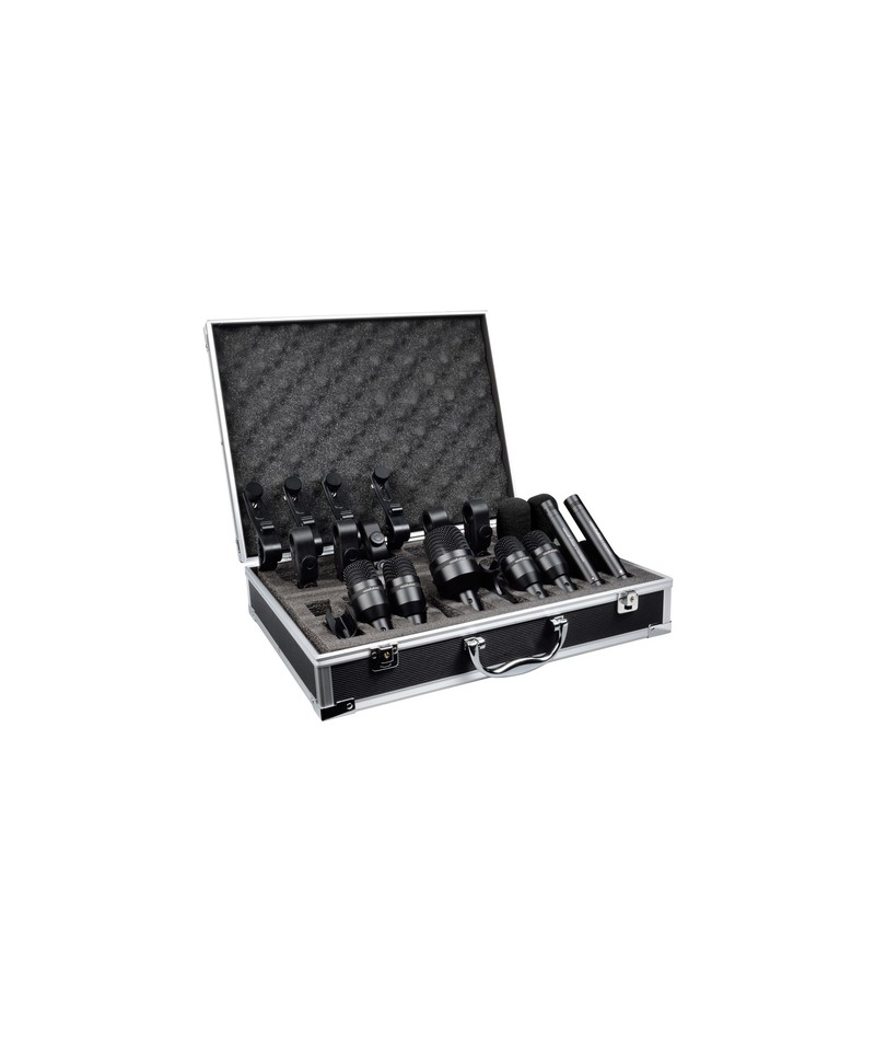 Soundsation DSKIT-7 An excellent solution to play the sound of your set of acoustic battery tools. The new microphones designed in reduced dimensions give them a better aesthetic appearance and discretion in relation to the battery used. Ideal for modern drummers, this kit offers maximum reliability both in live performances and in studio recording applications. Each microphone mounts a high quality capsule and its frequency response has been optimized for each microphone based on the percussion instrument (snare, tom, case, plates). Dskit-7 includes supports for various types of microphone and even a robust Flight-Houses for easy transport.