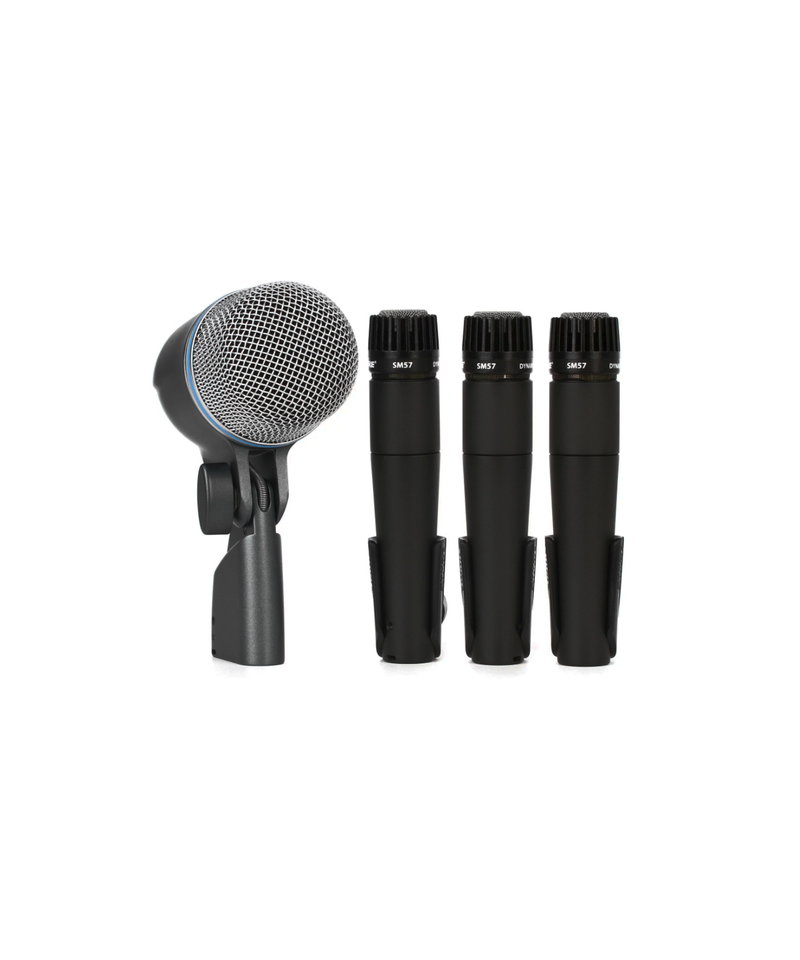 This particular collection includes three SM57 - Announced as "Swiss Army Knife" of modern music. The SM57 a high quality microphone, ideal for teliglia, excellent on Tom and also simply for its versatilit on guitar amplifiers, and voice. Then, of course, there is Beta 52a. Thanks to its specially optimized frequency response, you get a serious "boom" from this microphone