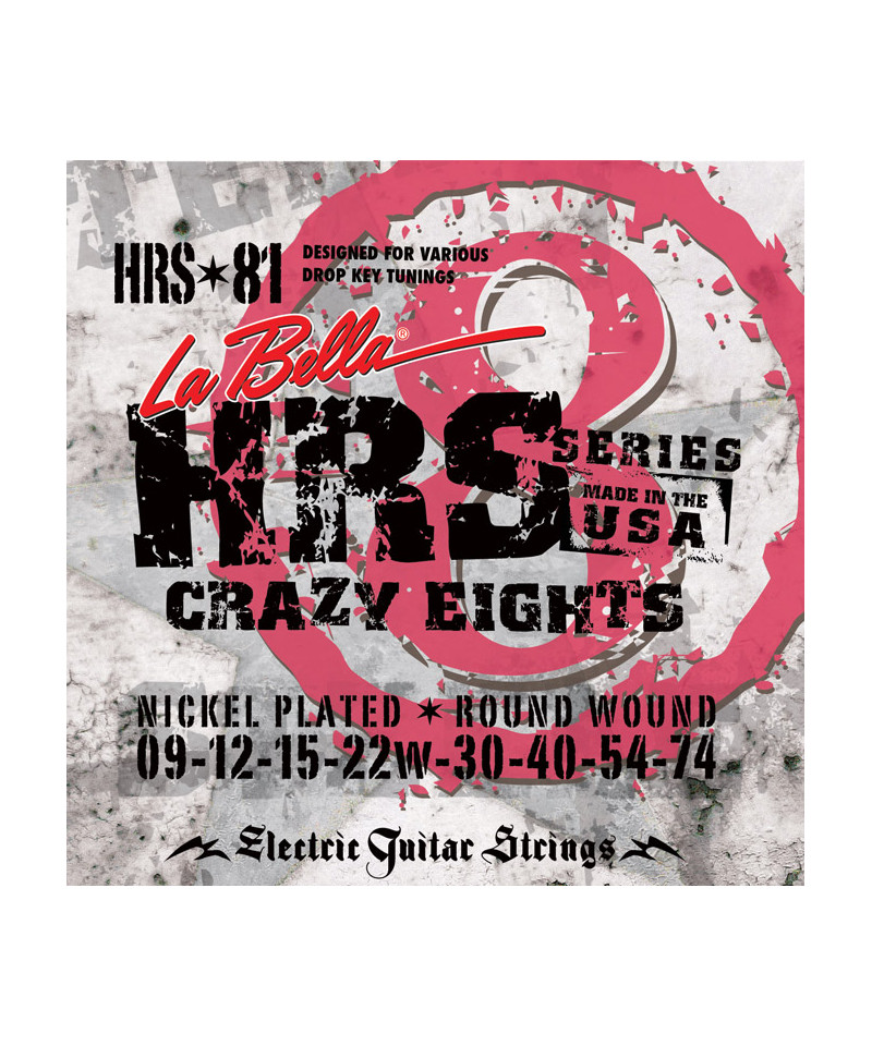 Nickel-Plated round wound. 8 strings. Scaling: .009 - .012 - .015 - .022w - .030 - .040 - .054 - .074. .070 / 8th rope Wound at 33. Produced in the USA with American cable. Packaged using MAP (Modified Atmosphere Packaging) technology to prevent oxidation and guarantee freshness.