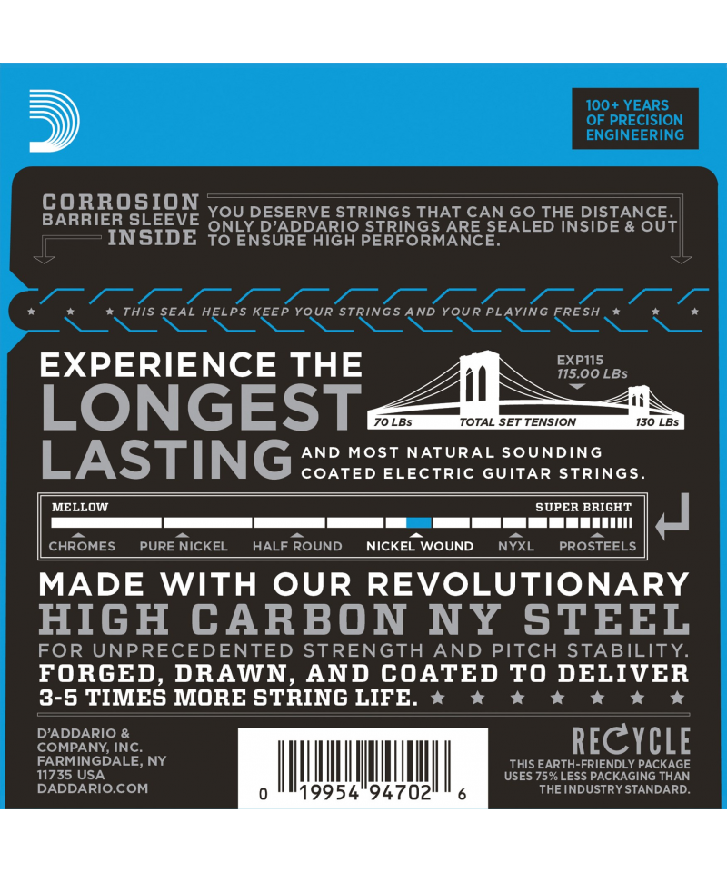With the innovative EXP strings, the fabricant near Long Island offers a choice of ropes for electric guitars with a layer that shows very good results against corrosion.