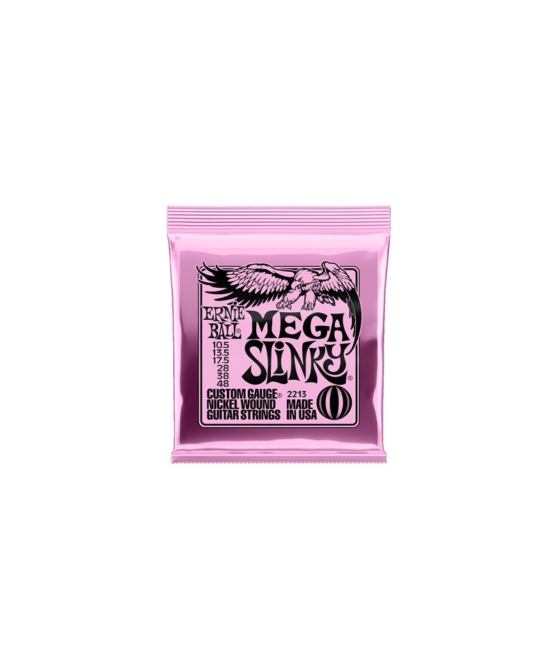2213 Nickel Wound Mega Slinky 10.5-48 is the Slinky series Ernie Ball electric guitar suit. The Mega set offers the same brilliant and balanced stamp for which the Slinky series is known throughout the world in a combination never offered before. The scaling of the Mega set guarantees a balanced and comfortable feeling on all the strings. Major rigorability with minimal timbar and voltage differences.