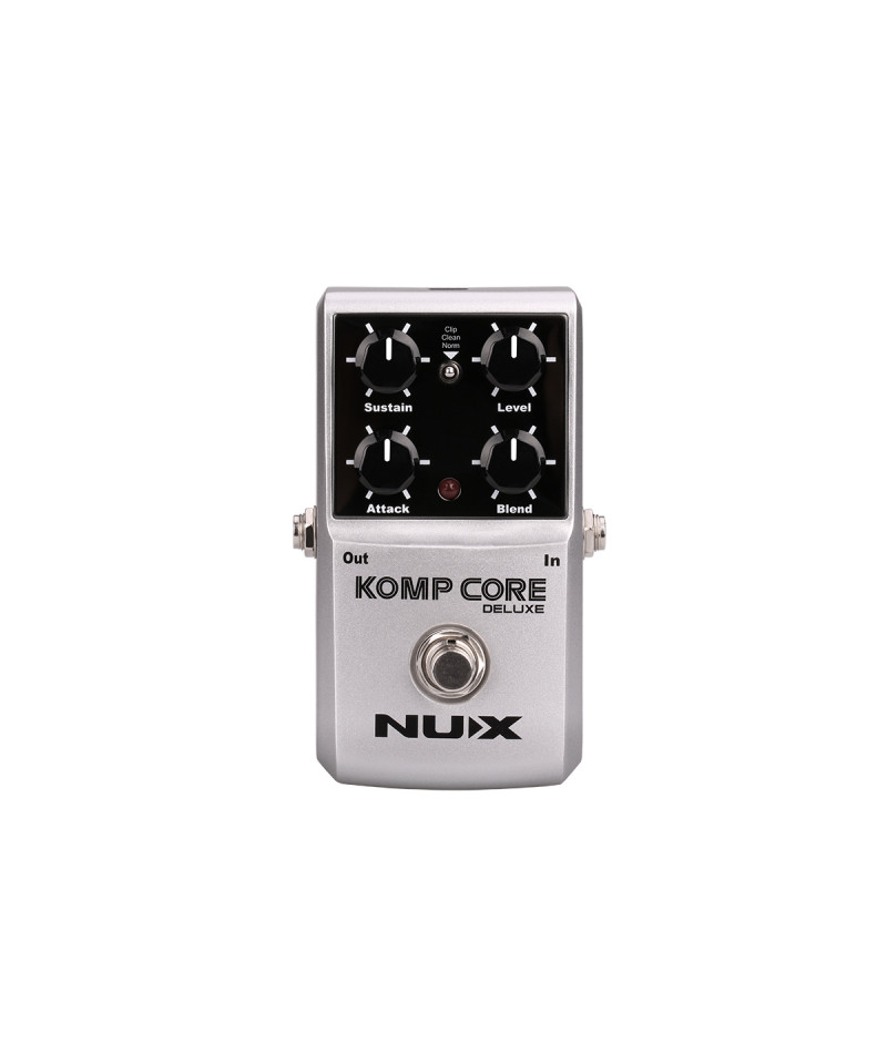 DELUXE KOMP CORE is an analog multifunction compressor with a wide variety of compressions. 3 different modes (clips, clean, normal) to manage compression based on the instrument pick up output. The Level, Sustain, Attack and Blend controls allow you to sculpt your sound with great ease and flexibility by serving a minimum noise.