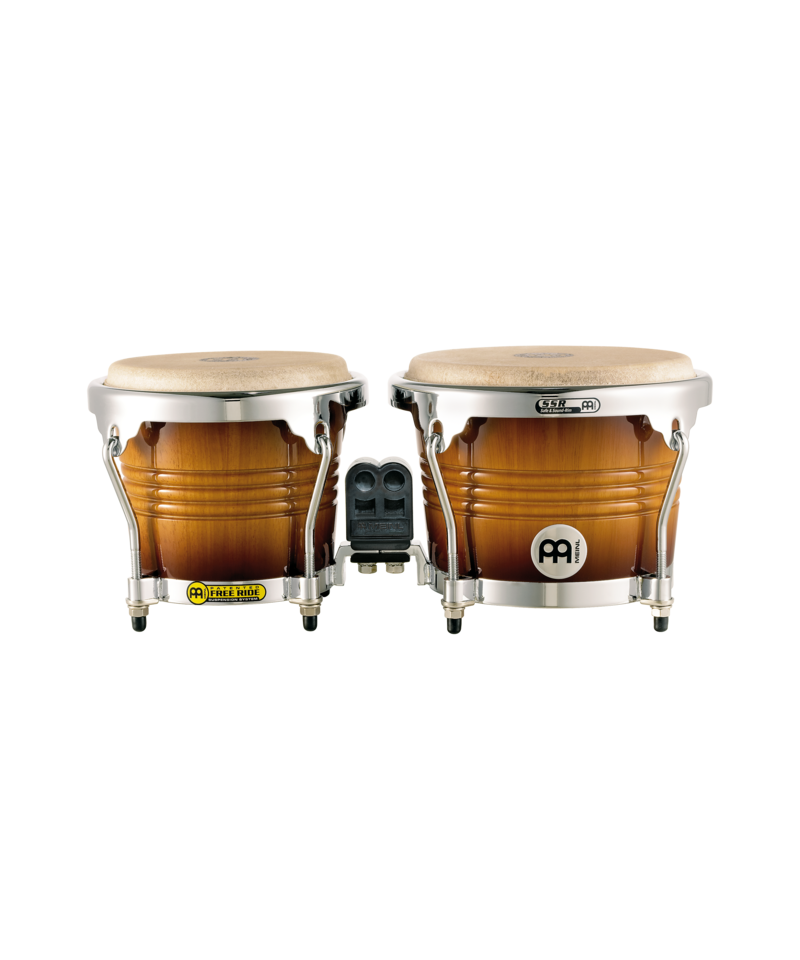 Set of Gold Amber Sunburst bongos (6 '' 3/4 and 8 ''). An excellent bongo with the innovative free ride system that does not punch the drums increasing the resonance and volume. The body made of siam oak and heads are made of hand-selected buffalo skin. Also mount a patented plastic locking plastic piece to the bongo foot if necessary.