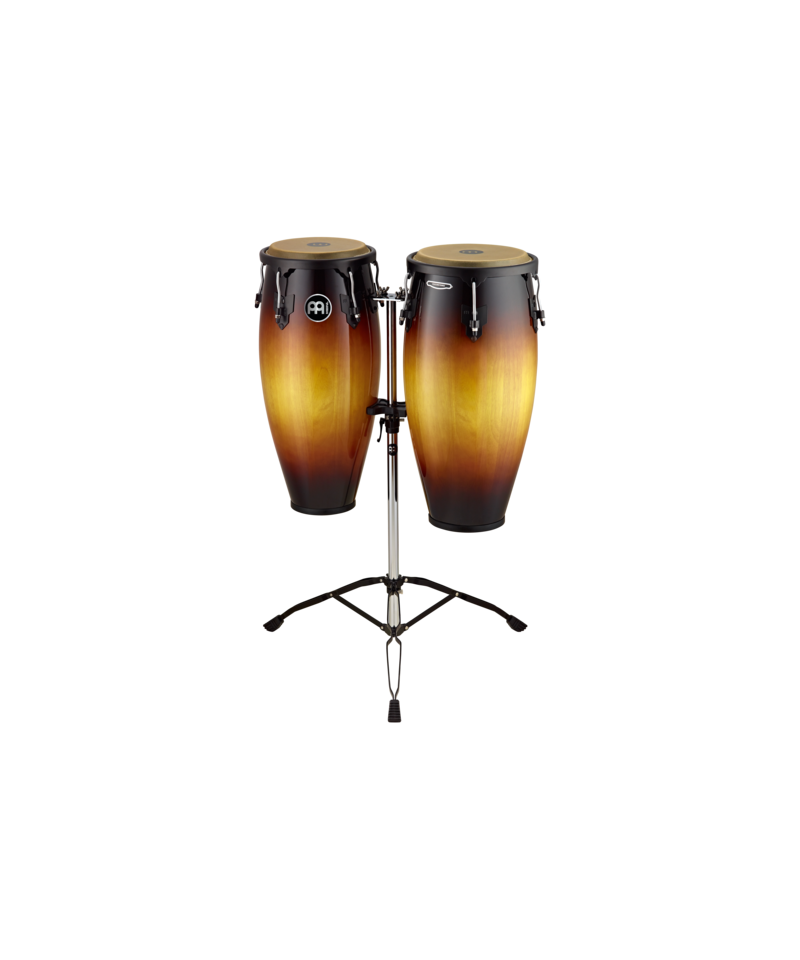 Set of 10 '' and 11 '' congas. Vintage Sunburst finish. With Siam oak drums and buffalo heads MEINL True Skin, this couple of congas a great choice for students and percussionists with more than one set. The head skins are expertly selected by hand. The '' '' Safe Sound '' '' 'circles offer an ergonomic feeling when it sounds.