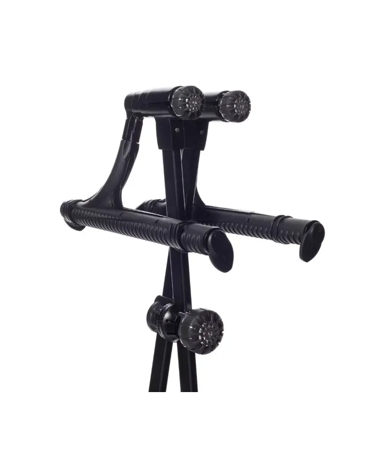 The first support to the keyboard world with independent regulation between upper and lower: adaptability to any availability of space. It can support high weight keypads as electric planes and small portable devices. Structure made with 30x15x1.5 mm steel tubes painted with epoxy powders. Central joint and upper joints in aluminum alloy with system. Crocodile for infinitesimal adjustment. All knobs are chromed zinc alloy with natural rubber cover. Upper arms with zinc alloy soul and nylon shell. Rubber rubber blocks for housing and leveling of the instrument, stop hooks-Self-leveling cable and feet. Completely resealable for a minimum footprint.