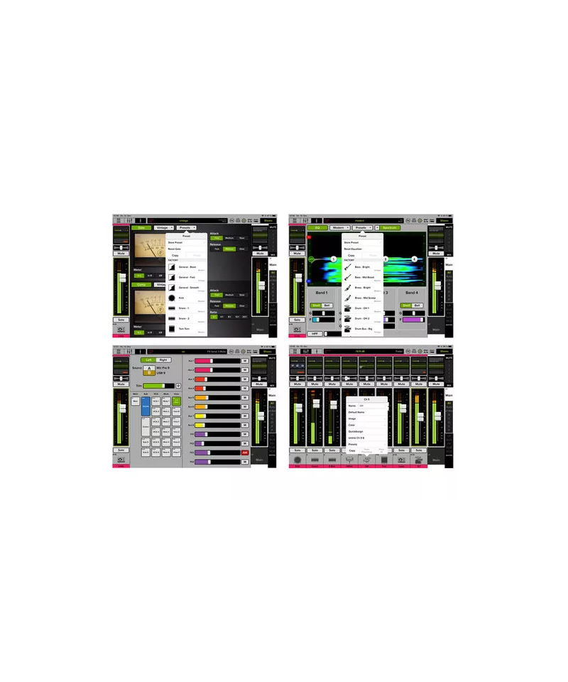 - 16 entrance channels with 4-band PEQ + HPF, gate, compression and RTA / spectrograph
